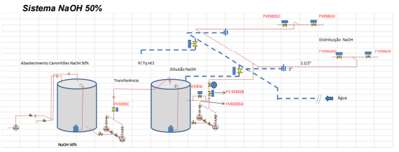 • Distribuição de água do tanque Desmi para diluição Ácido clorídrico e Soda